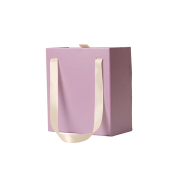 Cajas de regalo de cartón rígido con impresión de logotipo Caja de cajón deslizante de embalaje de lujo vacía púrpura con asa de cinta